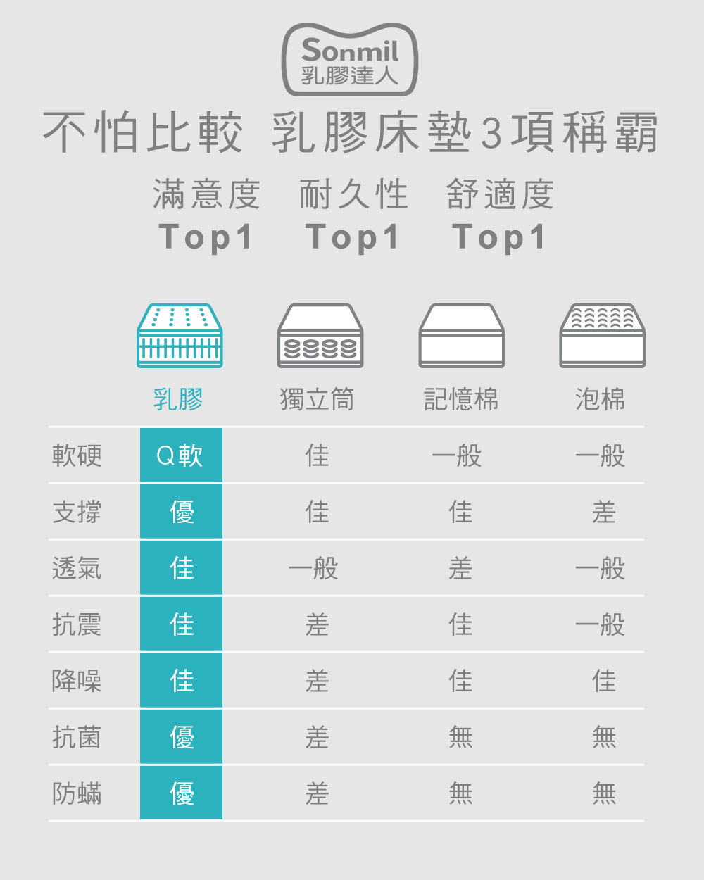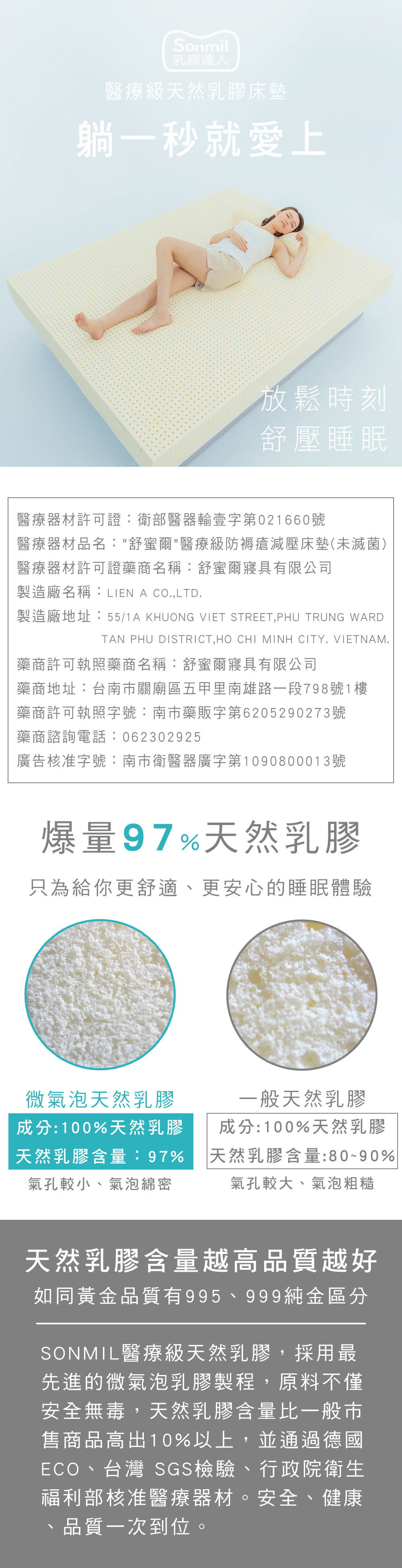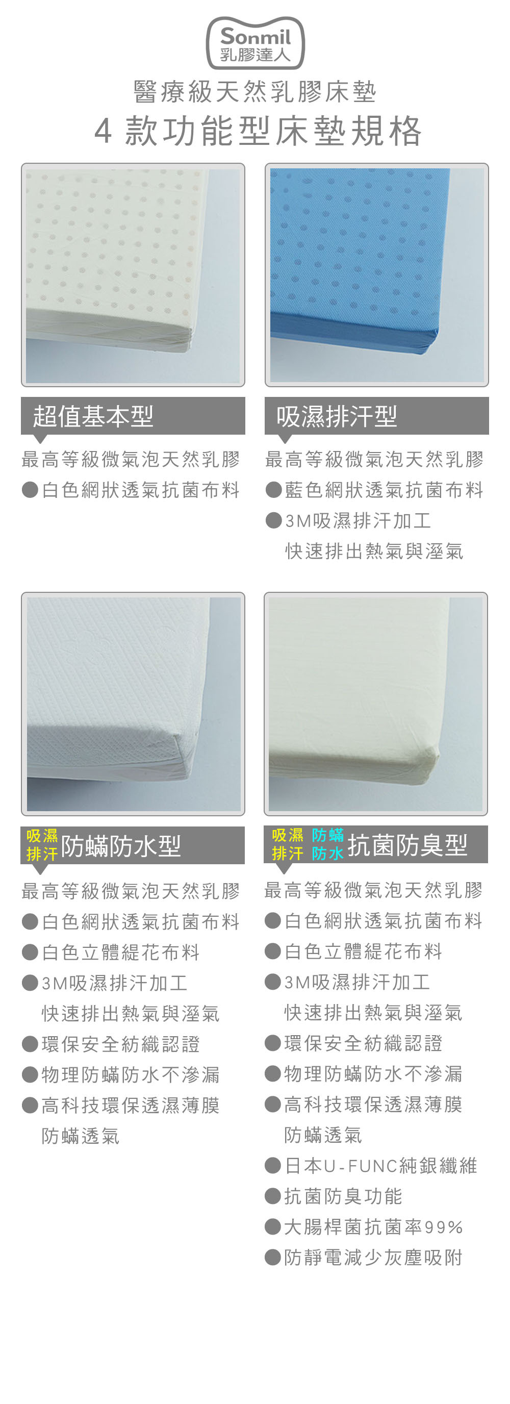 sonmil乳膠床墊 醫療級|防蟎防水透氣型|商品特色
